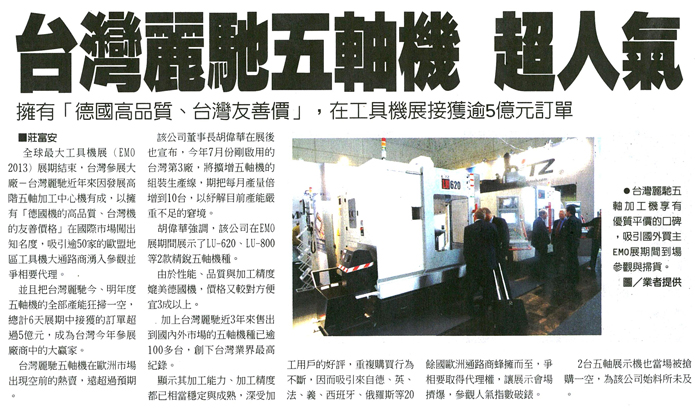 2013.09 .26 Commercial Times- Taiwan Litz five-axis machining center is extremely popular